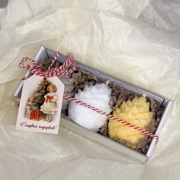 • Набор из трех ароматизированных свечей шишек ручной работы;