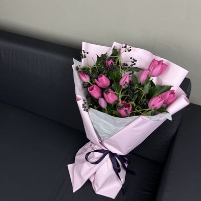 Букет из 13 тюльпанов и зелени