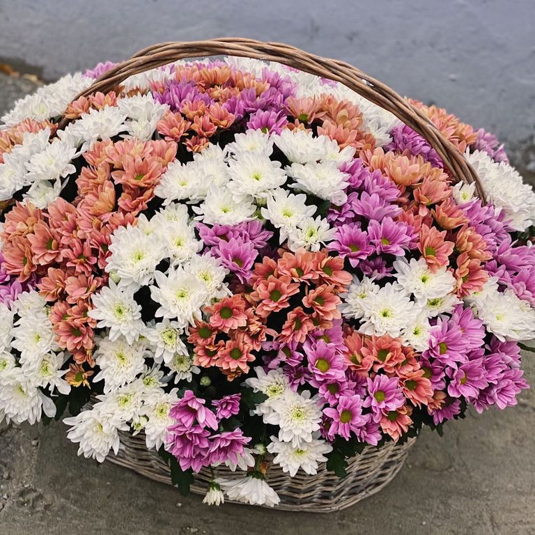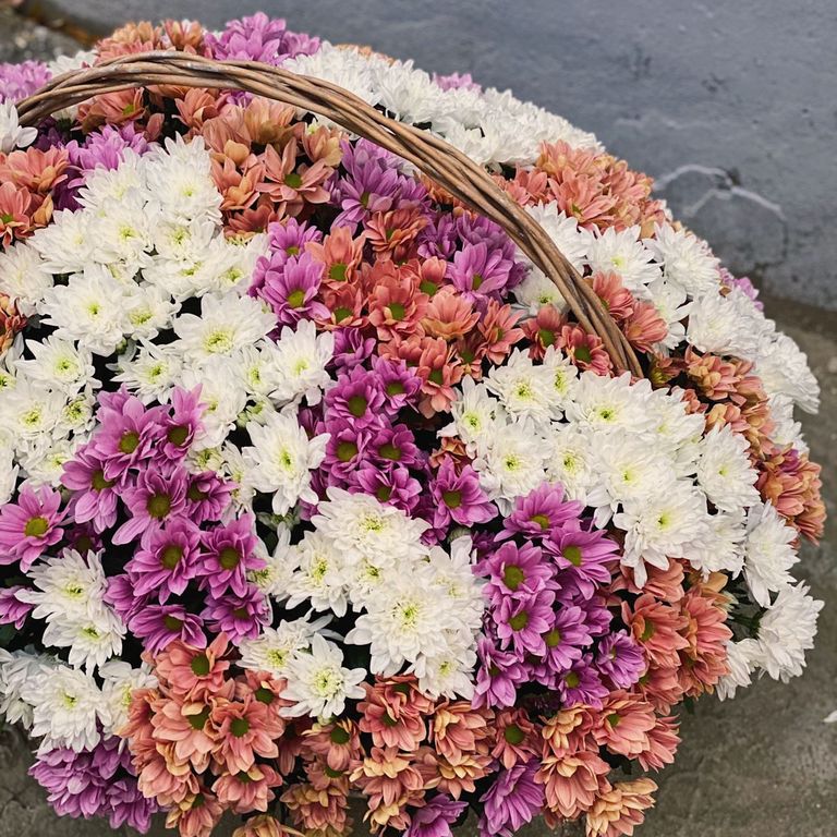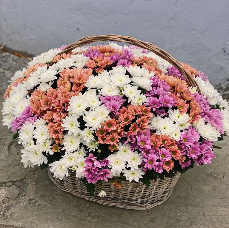 Корзина из 85 хризантем микс