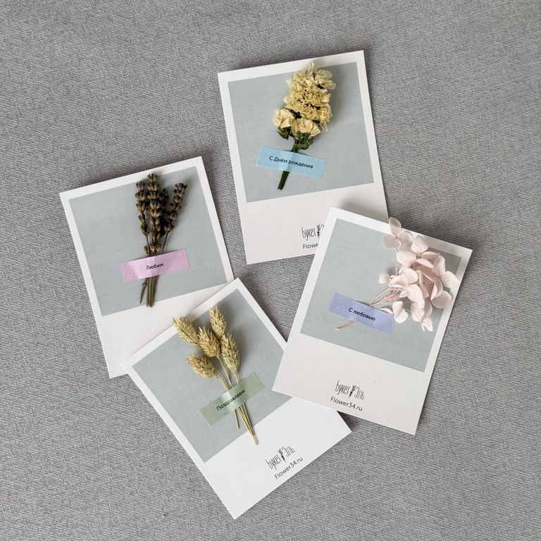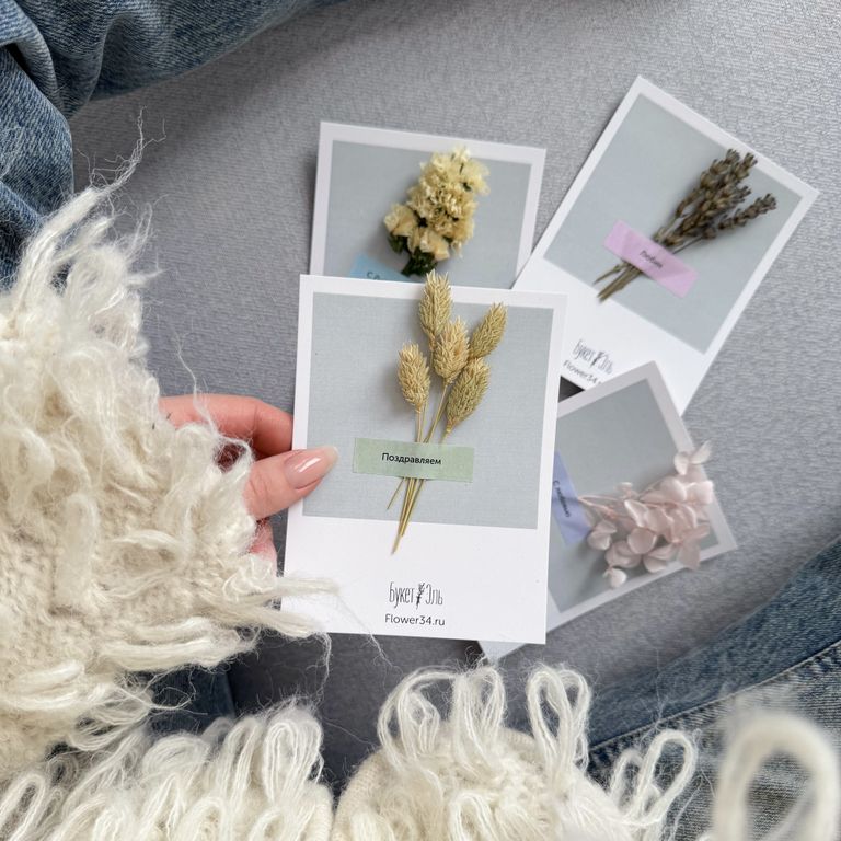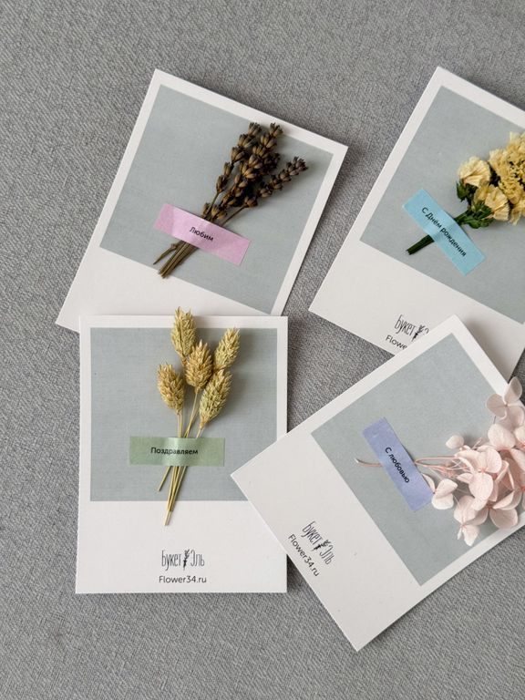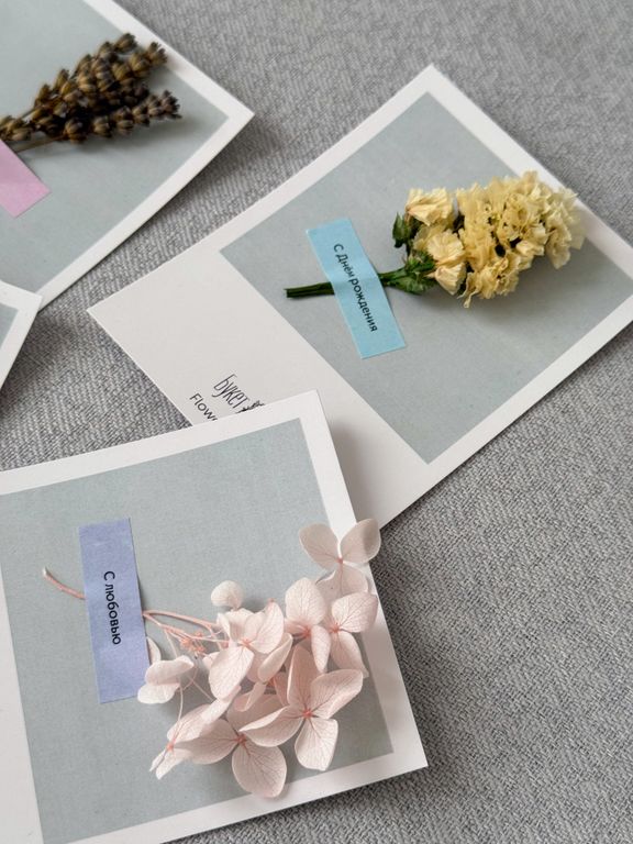 • Открытка ручной работы с сухоцветами на выбор